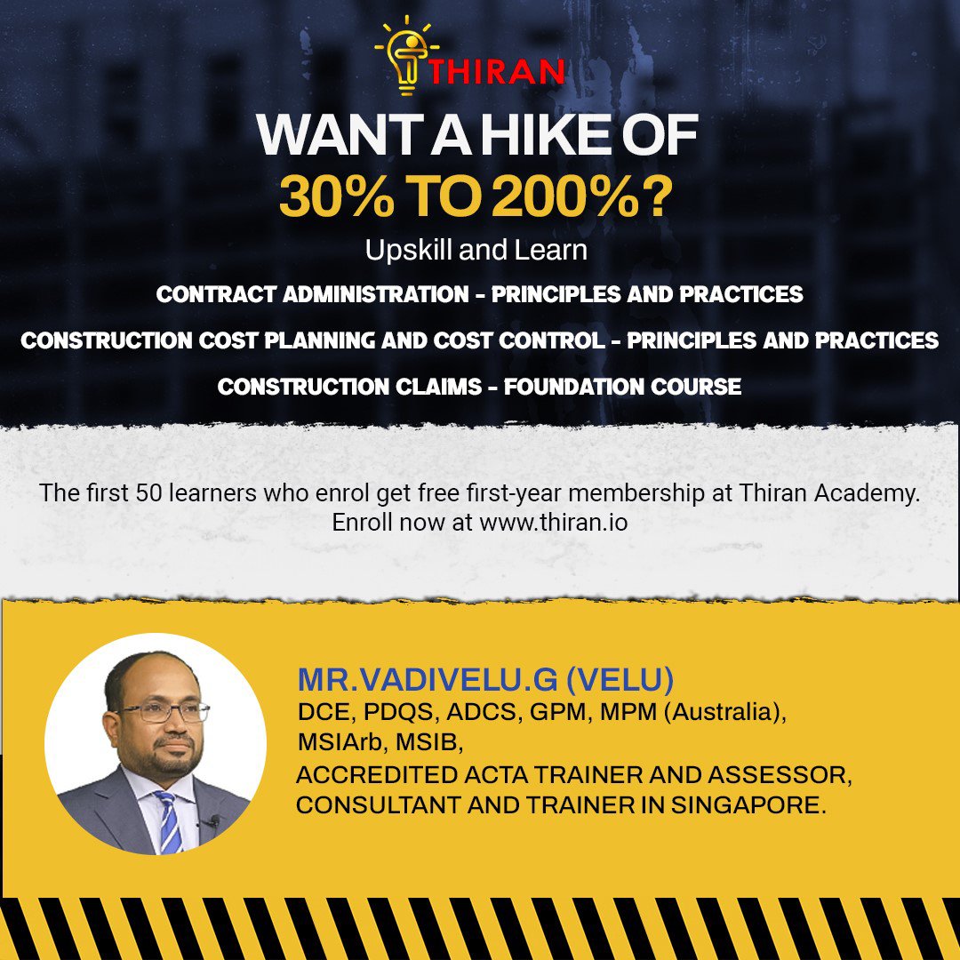 Master in-demand Quantity Surveying, Contract Administration and Contract Management skills and advance your career. Our Thiran platform’s blended learning program combines the flexibility of online learning with expert-led guidance.
